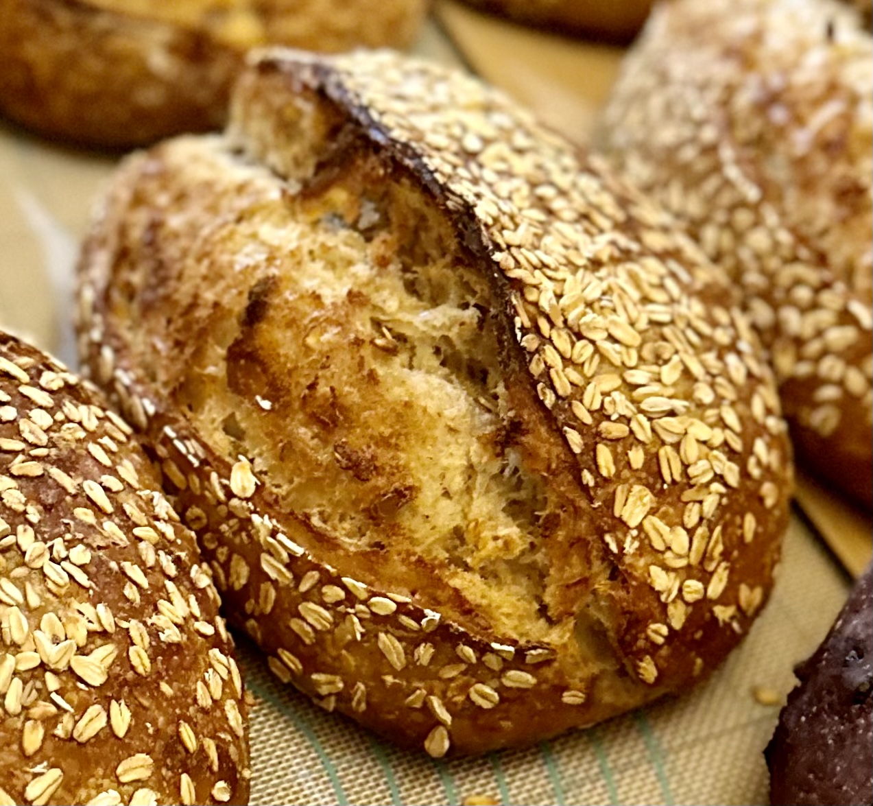 Ingredients: Organic Bread Flour, Organic Wheat Flour, Water, Organic Sprouted Oat, Wild Honey, Kosher Salt, Wild Yeast